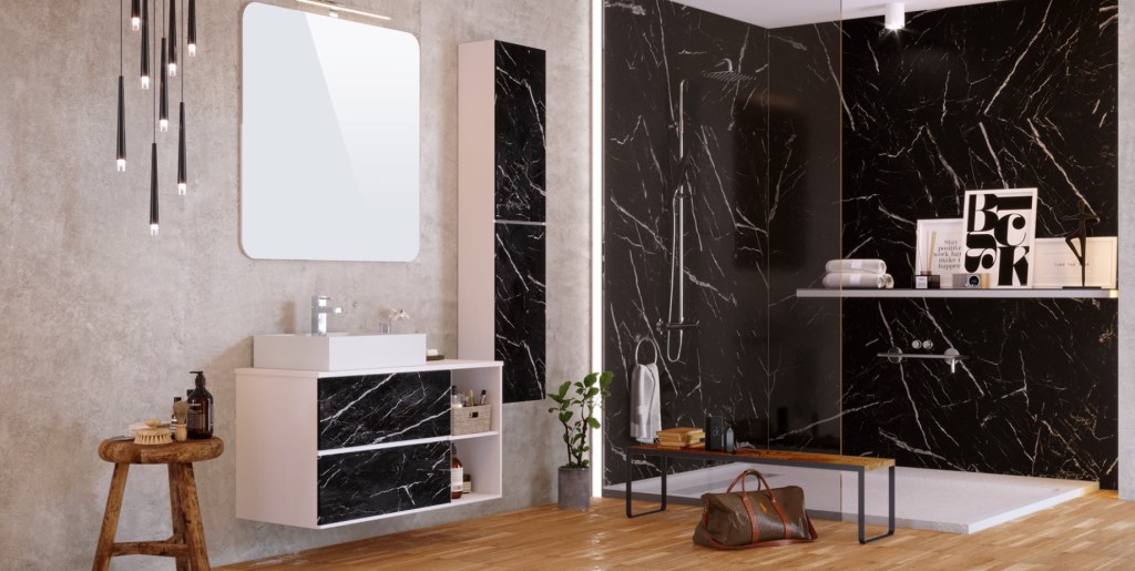 Kobert-In est une gamme de panneau grand format destinée à être utilisée en parois de douche et pour décorer vos murs.